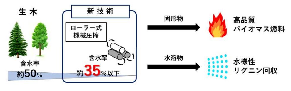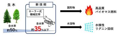 ・木を搾る技術を開発し、木質バイオマス燃料の製造を効率化/岡山大学